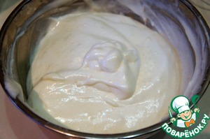 Белки взбить в крепкую пену, постепенно добавляя по 1 ст. л. сахарную пудру. Пена должна быть такой плотной и блестящей, чтобы ее можно было резать ножом.