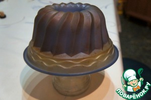 Форму с бисквитом вынуть из духовки и очень аккуратно перевернуть, одев отверстием на бутылку с высоким горлышком. Вот тут-то меня моя силиконовая форма и подвела, она ведь мягкая, форму не держит ( ( ( Короче, намучилась ( ( (
