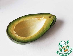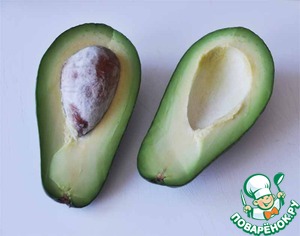 Авокадо перерезаем пополам, поворачиваем половинки друг против друга, удаляем косточку. -