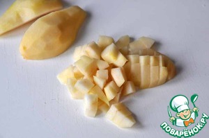 Грушу чистим от семян и шкурки и нарезаем кубиками.