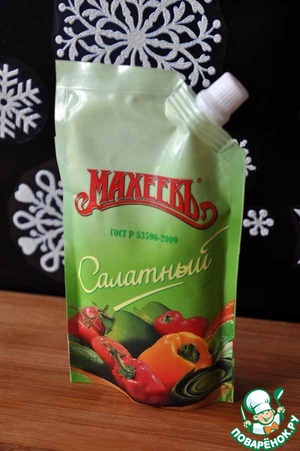 В качестве заправки для этой лёгкой закуски наиболее хорошо подходит майонез "Салатный" от "Махеевъ".