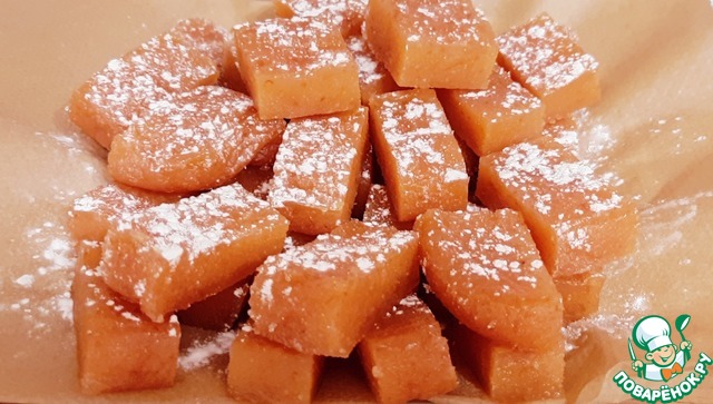 После того, как мармелад остыл, накрываем его пергаментом и ставим в сухое место на неделю.