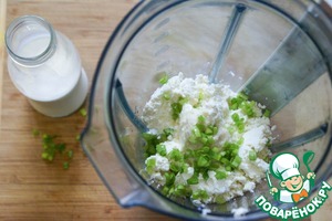 Взбить в блендере рикотту со сливками, добавив туда чайную ложку хрена, сок половинки лимона и нарезанный зеленый лук.
