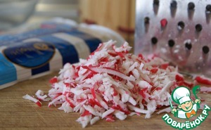 Крабовые палочки натереть на терке.