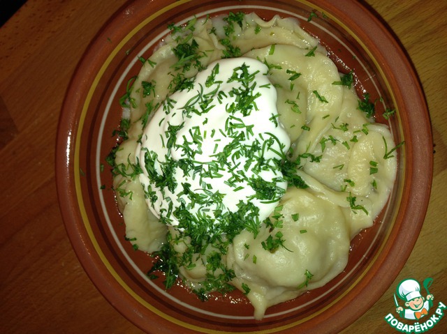 Такие пельмени употреблялись с маслом, густой сметаной, посыпались домашним сыром, сбрызгивались сверху яблочным уксусом.