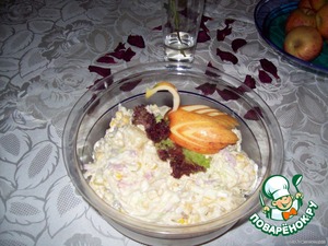 Солить и перчить не надо, так как все составные салата солёные, а перец перебьёт тонкий вкус ананаса.