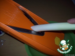 Ананас я купила уже в кусочках, но можно взять и кольцами и потом самим порезать. С него так же слить жидкость и дать хорошо стечь. Яблоки порезать соломкой, я это делаю на овощерезке, но можно и ножом порезать, если таковой нет.