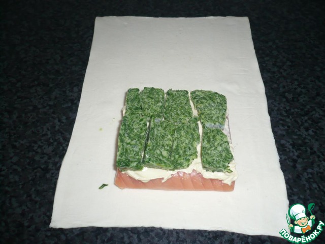 Рецепт «Семга со шпинатом в слоеном тесте»: