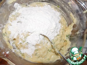 Затем добавляем к нашему тесту муку и все хорошо перемешиваем.