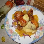 [+5]Круууто! Курица у меня мариновалась долго,но от этого она стала ещё вкуснее.сначала сделала точно как в рецепте,попробовала,а потом выложила весь апельсиново-луковый салат на курицу, и вернула ещё на минут пять в духовку,стало намного вкуснее. А при поедании,когда этот нагретый салат смешивался с соусом,вкус стал просто божественным. Обязательно буду пользоваться этим рецептом. Спасибо за рецепт.