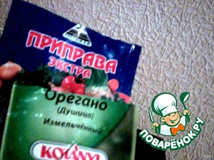 Жарить: налить и разогреть на сковороде много масла, положить куру, густо посыпав ее приправой "Экстра" и Орегано