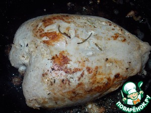 Через 12 часов достаем грудку.. Обжариваем ее на сильном огне минуты по 3 с тех сторон, которые можно подрумянить..
