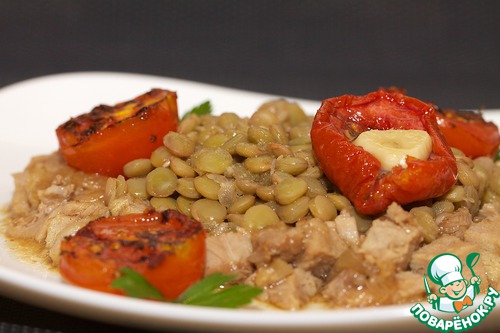 В холодное время гастрономические приоритеты меняются: теперь никто не откажется от плотного и сытного обеда. Предлагаю рецепт как раз для такого случая: сытно и вкусно, да еще и очень полезно! Сочное запеченнное мясо и овощи, ароматный сок, пропитывающий бобовые, нежные помидорки черри-гриль... - целый букет ярких вкусов и ароматов, радуга цвета на тарелке! Очень вкусно, заходите!