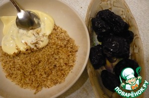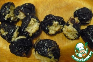 Нафаршировать ореховой смесью чернослив.