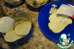 В отдельной миске смешать натёртый на мелкой тёрке сыр и 2 ст. л. майонеза. Пока отставить в сторону.