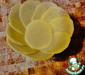 Вниз положить дольку картофеля, чтобы она закрепила все лепестки.