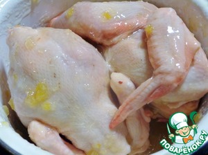 Перепёлок помыть, и хорошо промазать джемом с виски. Оставить мариноваться минимум на час, максимум на 2-е суток.