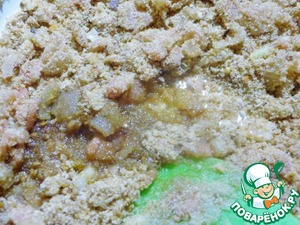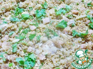 Всыпать панировочные сухари, влить оливковое масло, перемешать.