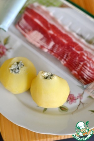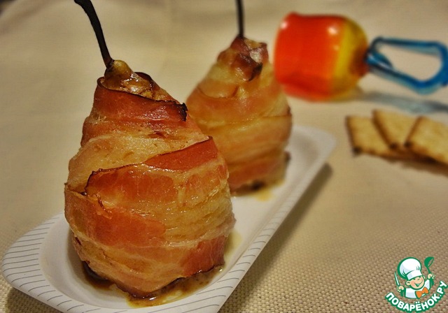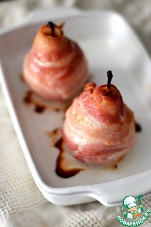 Рецепт «Пошированная груша с рокфором в беконе»: