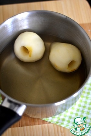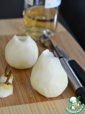В это время почистить груши: очистить кожицу, убрать сердцевину. Верхушки груш не выбрасывать, они понадобятся для украшения.