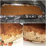 Берём форму для запекания в виде буханки. Если вы не доверяете своей форме, то застелите её пекарской бумагой. Я предпочитаю использовать разовые формы. Выкладываем в форму фарш, аккуратно разравниваем. Ставим в нагретую до 200 градусов духовку, выпекаем 50 минут.