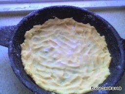 Тесто выложить на сковородку, разровнять и загнуть бортики.