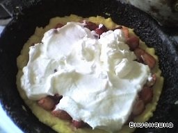 Тесто выложить на сковородку, разровнять и загнуть бортики. 10 -15 минут подрумянить в духовке.
