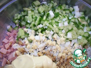 Все ингредиенты смешиваем, добавляем майонез"Махеев". -