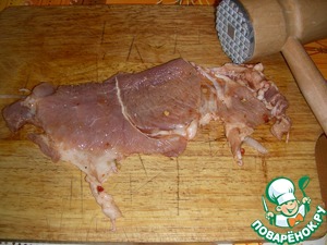 Слегка отбиваем мясо с двух сторон молоточком или обратной стороной ножа.