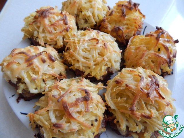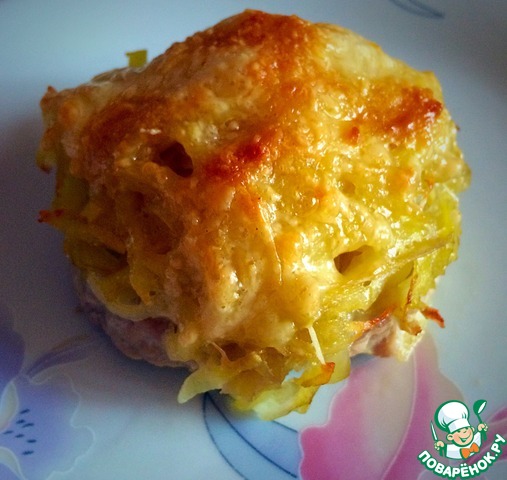Приготовила строго по рецепту, только в фарш добавила немного чесночка и приправок. Картофель попался не очень, натерла, было столько жидкости - отжимала. И после того как стожки были готовы - картофель был чуть сыроват, пекла мин 45 примерно. Но даже не смотря на "вредную картошку" в итоге получилось очень-очень вкусно! Дети съели все под чистую. Хочу отметить что блюдо сытное и мясо и гарнир в одном, все запекается одновременно - большой плюс! СПАСИБО автору!