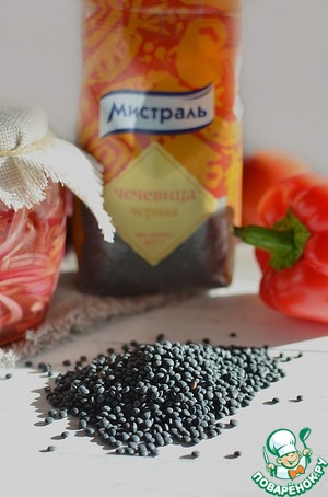 Вкусный и яркий салат из черной чечевицы порадует вас своим вкусом! А маринованный лук придаст пикантность.