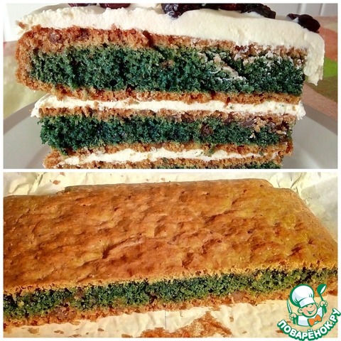 Мои дети не выдержали сутки и уже утром потребовали торт. Отрезаем, слышим изумленные вскрики и вопросы типа "Ты что, зеленку в тесто добавила?"
