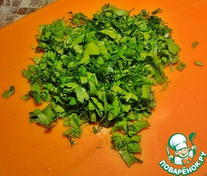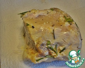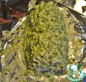 Разогрейте духовку до Т 200 гр. С. обмажьте свинину пастой из зелени.
