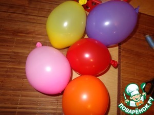 Для начала нам нужно надуть воздушные шарики, чтобы были примерно одного размера. Шариков нужно столько, сколько будете делать чашечек. Надутые шарики нужно сполоснуть водой, так как на них напыление, чтобы не слипались, да и кто знает, где они валялись в магазине.