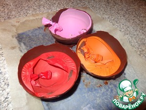 Ставим в холодильник на 1,5 -2 часа, до полного застывания шоколада. Чем дольше простоит, тем тверже будет изделие.