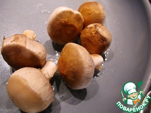 Грибы очистить и быстро обжарить на сильно разогретой сковородке (чтобы не потеряли сочность).