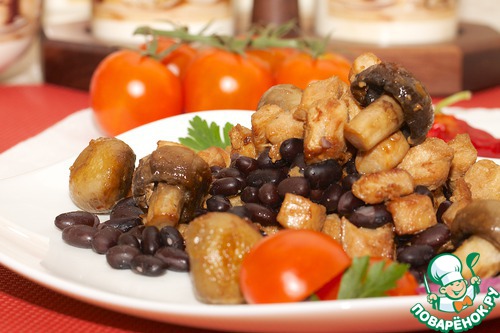 Вкусный и сытный салат, нежный грибной вкус фасоли усилен вкусом сочных шампиньонов. Угощайтесь!