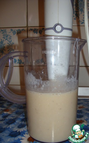 Складываем зефир и бананы в блендер и наливаем чуть-чуть кефира (чтобы лучше измельчить).