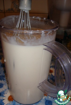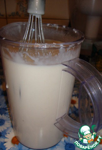 Выливаем весь оставшийся кефир и снова взбиваем.