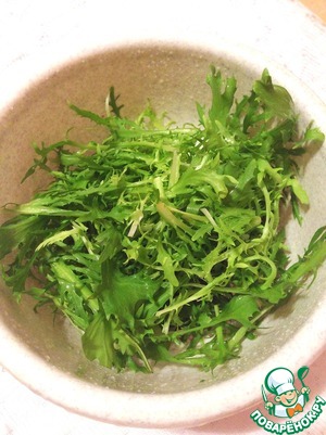 Промываем, обсушиваем и разбираем на веточки фризе. Настоятельно рекомендую использовать именно этот сорт, так как он наиболее оптимален для нашего салата по вкусу и внешнему виду.