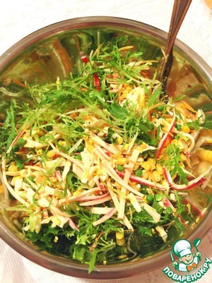 Немного осовремененная версия всеми любимого в 90-х салата с крабовыми палочками и кукурузой. Наряду с оливье и селедкой под шубой этот салат традиционно готовили на новогодний стол. В последнее время из-за обилия продуктов и множества других прекрасных рецептов салатов этот всеми любимый когда-то салат отошел на задний план, во всяком случае у нас в семье точно. Но иногда ностальгия по прошлому, в том числе и кулинарному, дает о себе знать. Вспомнился мне этот салат недавно, но в классическом варианте воспроизводить его точно не хотелось. И пришел в голову вот такой витаминизированный его вариант. Получилось очень-преочень вкусно!