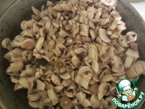 Шампиньоны нарезать тонкими пластинами, тушить до готовности, посолить по вкусу.