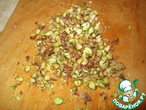 Верхним слоем кладем оливки (майонезом уже не промазываем) и измельченные орешки,