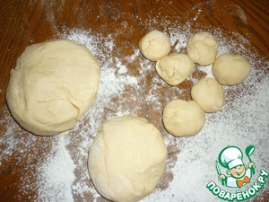Разделить тесто на 3 части. Одну побольше, две поменьше.