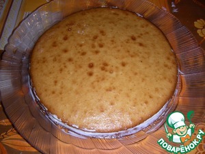 • Половину теста выливаем в форму, предварительно смазанную сливочным маслом. Ставим в духовку при 180-160*С приблизительно на 20 мин. Проверяем готовность коржа зубочисткой или спичкой.