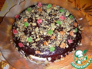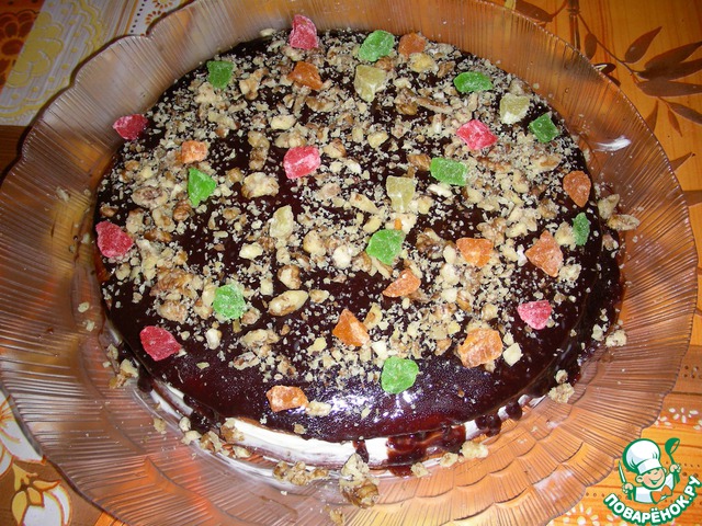 • Посыпаем пирог цукатами и дроблёными орехами.