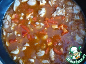 Курица с болгарским перцем, кориандром и кукурузой