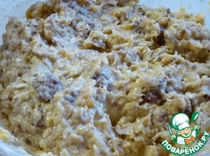 Смешать в миске, муку, сахар, геркулес, чечевицу, сливочное масло, грецкие орехи, мед, яйцо, корицу и шоколад.