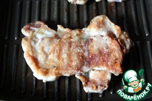 Мясо перевернуть на другую сторону и жарить еще 5 минут.