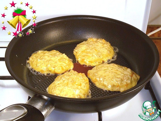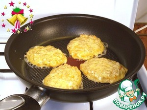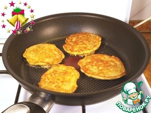Выпекаем оладьи до золотистой корочки с двух сторон. Печем на среднем огне.